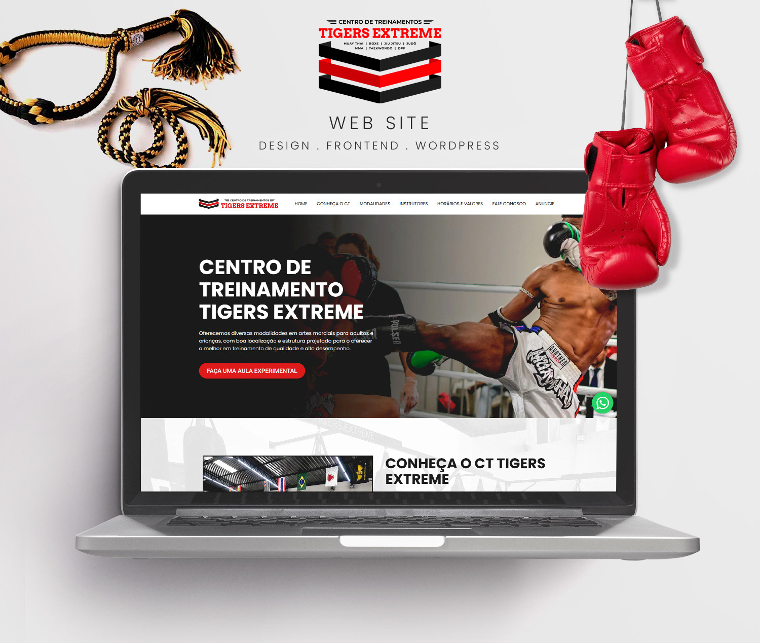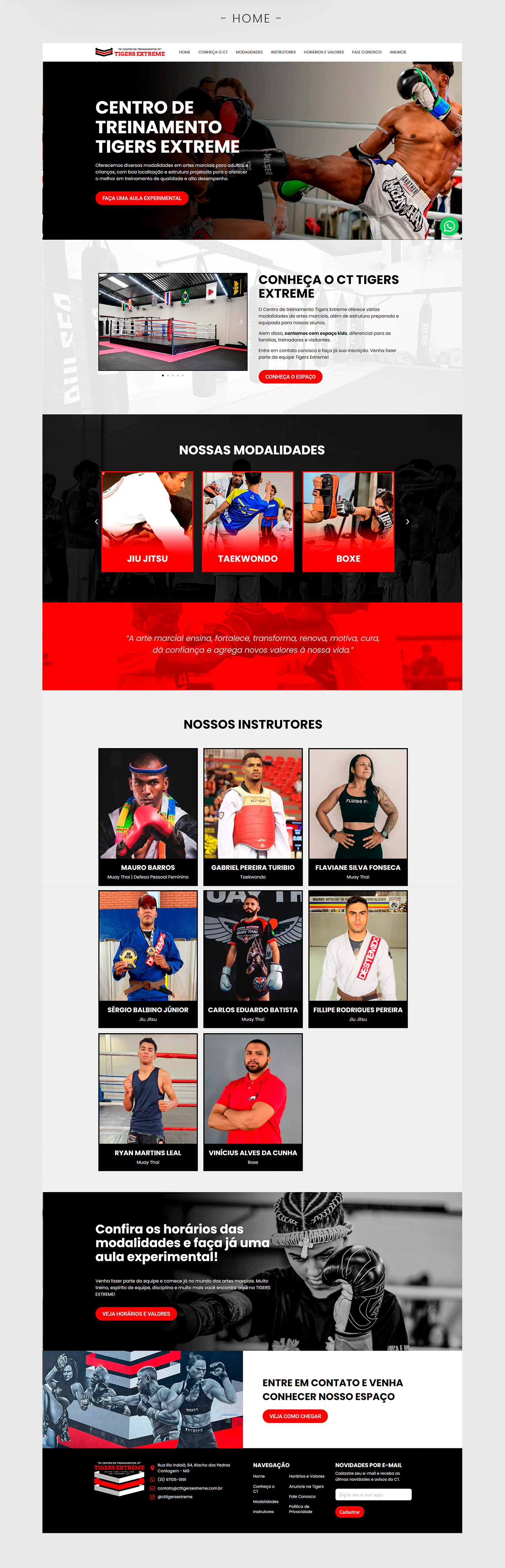 Desenvolvimento de logotipo e site institucional para centro de treinamento Tigers Extreme.