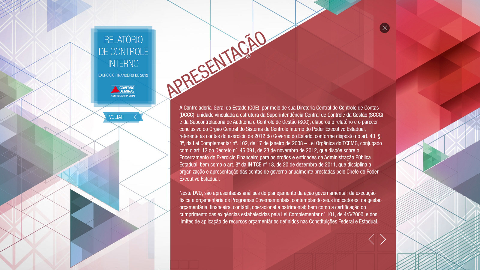Projeto interativo para relatório de controle interno do Estado de Minas Gerais.
